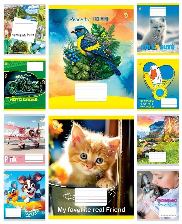 Зошити учнівські 12 аркушів коса лінія Тверда 43109 Лісові друзі, 25 шт. в упаковці