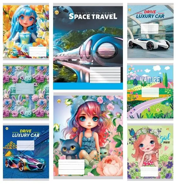 Зошити учнівські 12 аркушів лінія Тверда ТЕ42101 12ЛВ1 МІКС, 25 шт. в упаковці