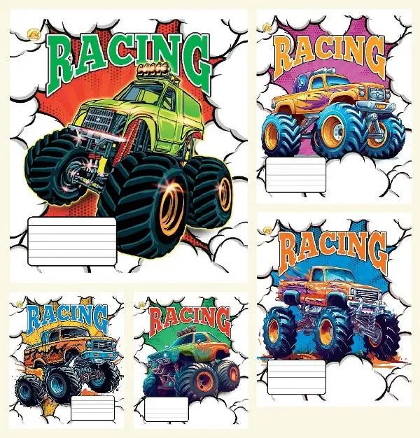 Зошити учнівські 12 аркушів лінія Тверда ТЕ42113 12ЛВ Автоперегони, 25 шт. в упаковці
