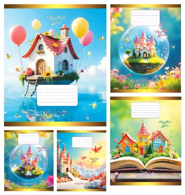 Зошити учнівські 12 аркушів клітинка Тверда Казковий замок, 25 шт. в упаковці