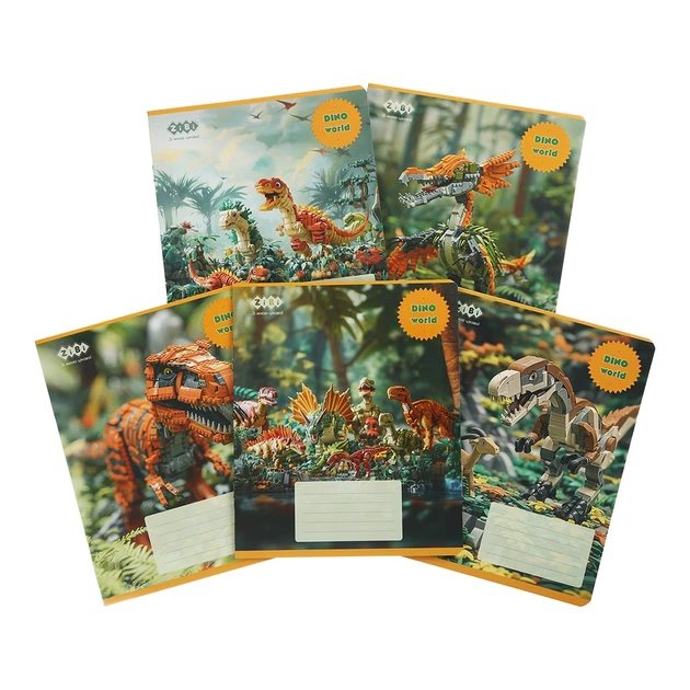 Зошити учнівські 12 аркушів клітинка KIDS LINE DINO, 25 шт. в упаковці