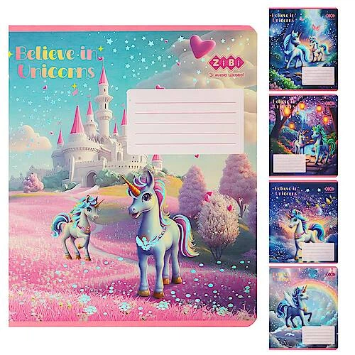 Тетрадь учнівський шкільний UNICORN, 12 арк., лінія, ціна за 25 шт. ZIBI (ZB25.1752L)