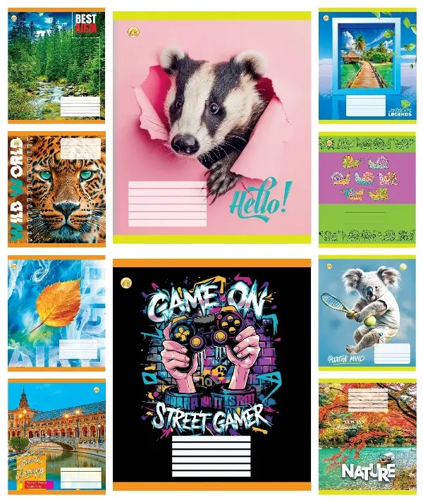Зошити учнівські 18 аркушів клітинка Тверда Природа, 20 шт. в упаковці