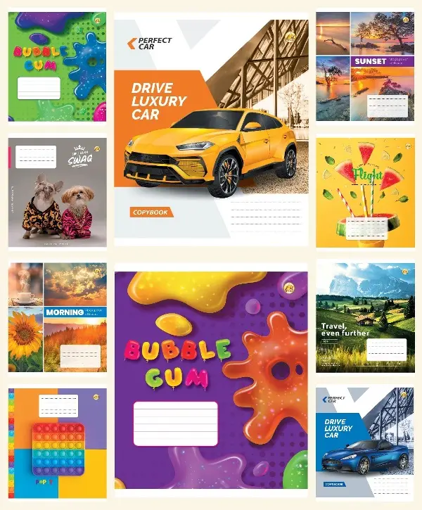 Зошити учнівські 18 аркушів клітинка Тверда Мікс 4, 20 шт. в упаковці