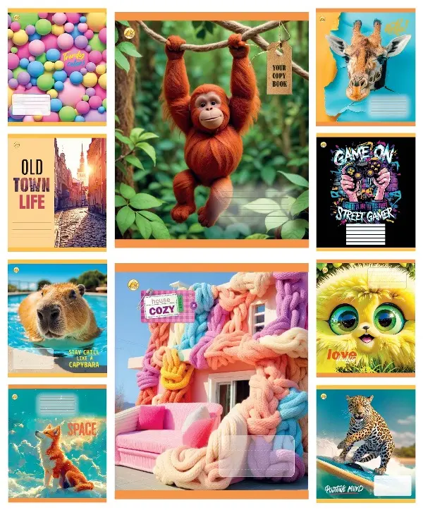 Зошити учнівські 18 аркушів клітинка Тверда CAPYBARA, 20 шт. в упаковці