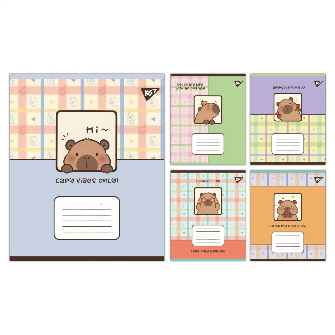 Зошити учнівські 12 аркушів клітинка Yes Capy vibes, 25 шт. в упаковці