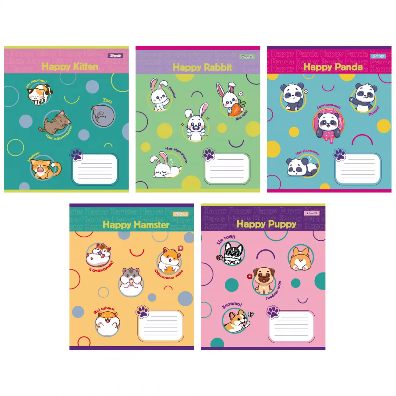 Зошити учнівські 12 аркушів лінія 1B Happy Puppy, 25 шт. в упаковці