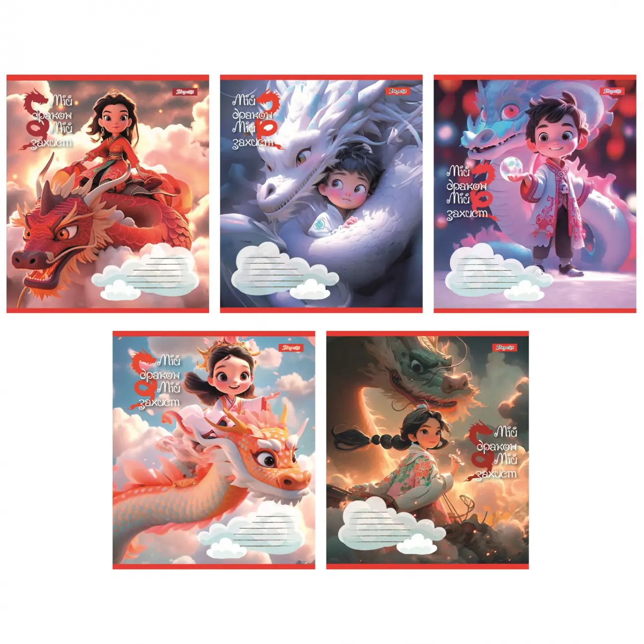 Зошити учнівські 12 аркушів клітинка 1B Мій дракон, 25 шт. в упаковці