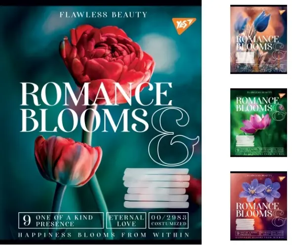 Зошити учнівські 96 аркушів лінія. YES Romance blooms 5 шт. в упаковці
