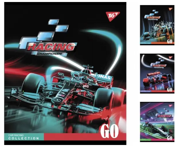 Зошити учнівські 48 аркушів клітинка Yes Racing championship з матовим ВДЛ, вибірковим УФ-лаком і мікроембосингом, 5 шт. в у