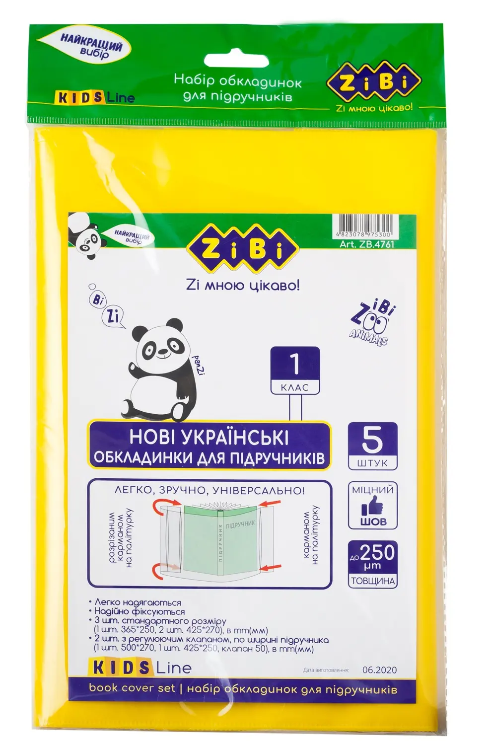 Універсальні обкладинки з регулюючим клапаном, 425 мм, Kids Line, 5 шт., 200 мкм ZB.4733