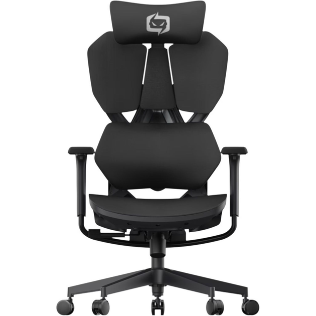 Крісло тканинне геймерське INFINI Stratos Чорно-біле комп'ютерне з механізмом гойдання та фіксації