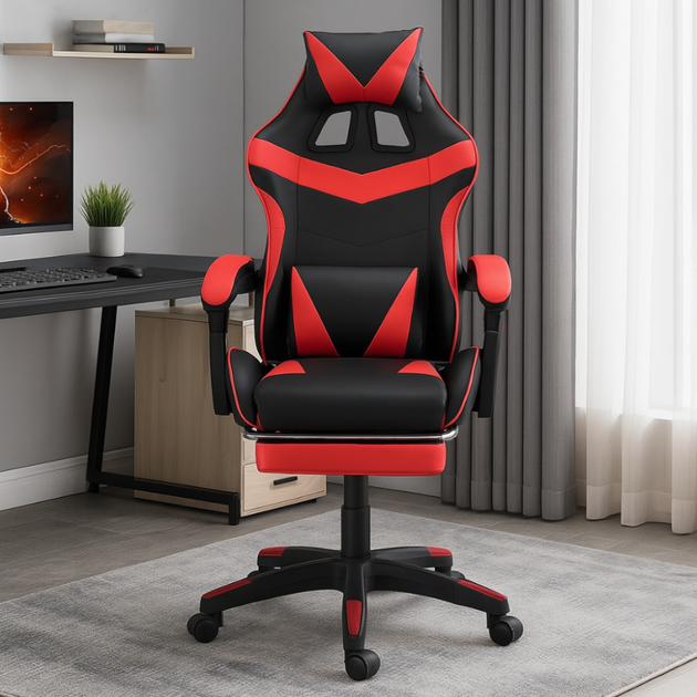 Крісло геймерське Comfort Game червоне з підставкою для ног