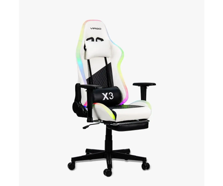 Геймерське крісло з LED підсвідкою Virgo L25 Чорно-біле Ігрове крісло для дому для геймерів та роботи
