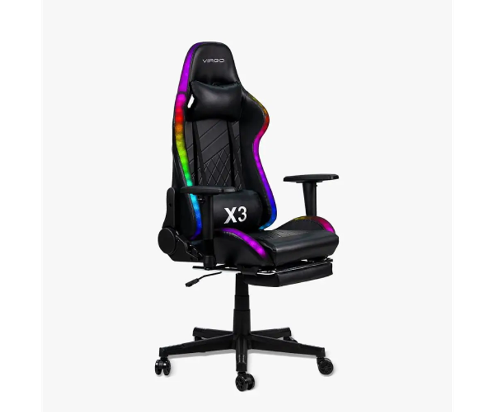 Геймерське крісло з LED підсвідкою Virgo L25 Чорний Ігрове крісло для дому для геймерів та роботи