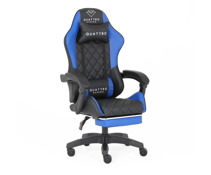 Комп'ютерне крісло для геймерів та роботи Gaming Quattro Чорно-синій із підставкою для ног