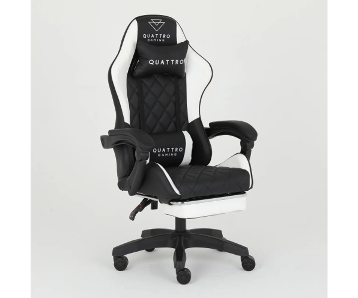 Комп'ютерне крісло для геймерів та роботи Gaming Quattro Чорно-білий із підставкою для ног