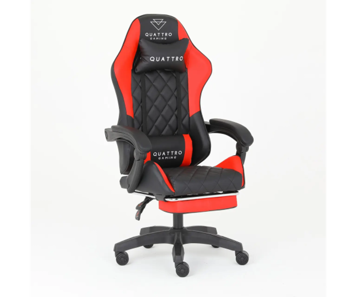 Комп'ютерне крісло для геймерів та роботи Gaming Quattro Чорно-червоне із підставкою для ног
