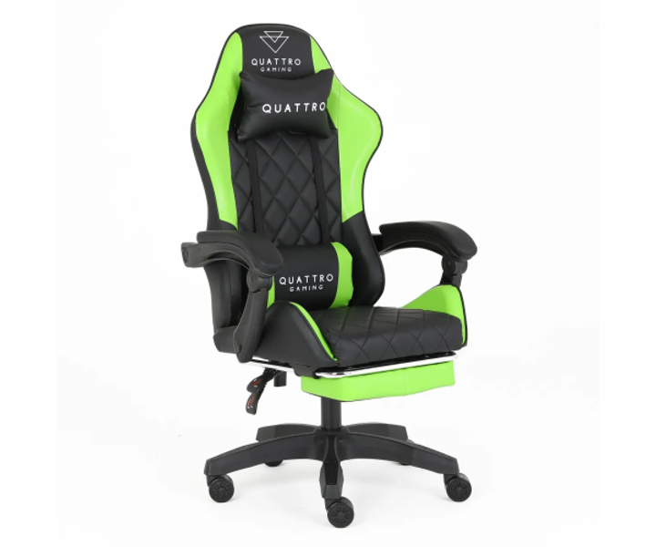 Комп'ютерне крісло для геймерів та роботи Gaming Quattro Чорно-зелений із підставкою для ног