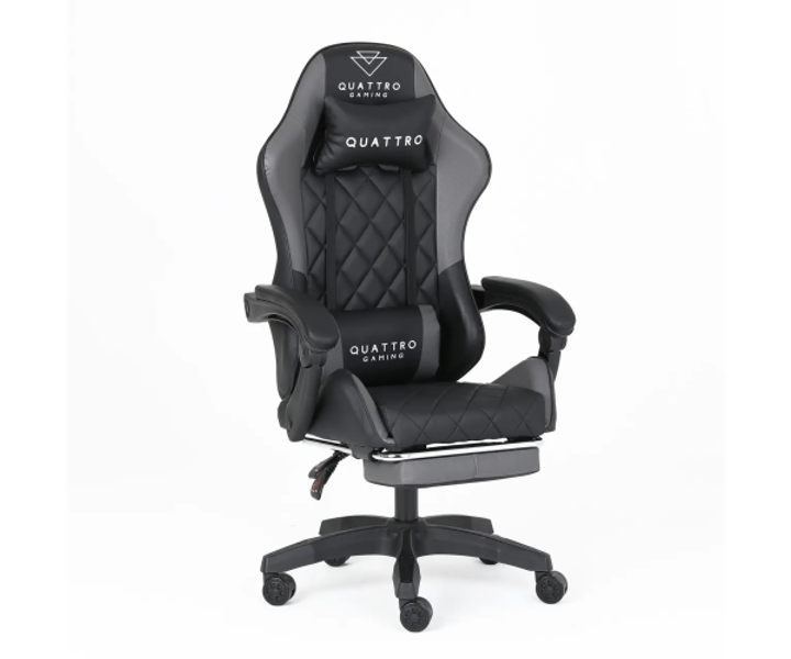 Комп'ютерне крісло для геймерів та роботи Gaming Quattro Чорно-сірий із підставкою для ног