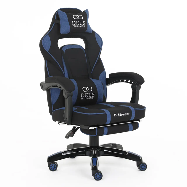 Ігрове спортивне крісло із тканини Deus Чорно-синє комп'ютерне крісло для геймерів та роботи