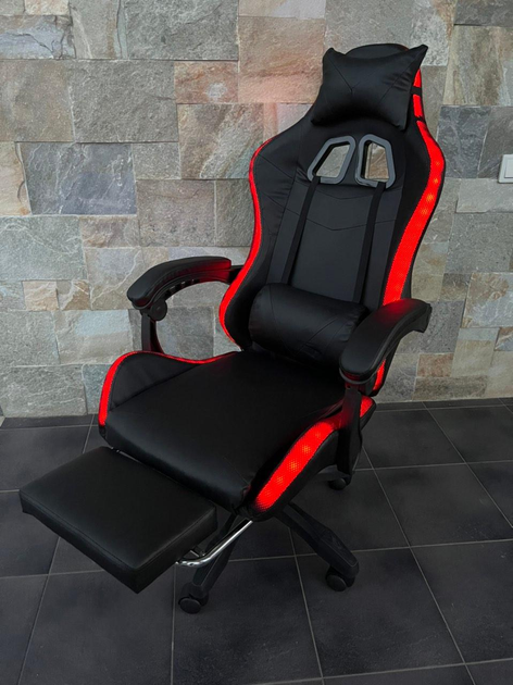 Компютерне спортивне ігрове крісло з підніжкою PRESTIGE 730 чорне LED