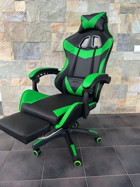 Компютерне спортивне ігрове крісло з підніжкою PRESTIGE 730 чорно зелене