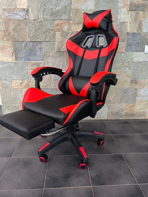 Компютерне спортивне ігрове крісло з підніжкою PRESTIGE 730 чорно червоне