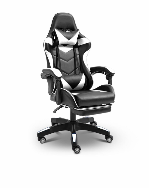 Крісло ігрове GAMING CHAIR G-001 з підставкою для ніг колір чорний/білий
