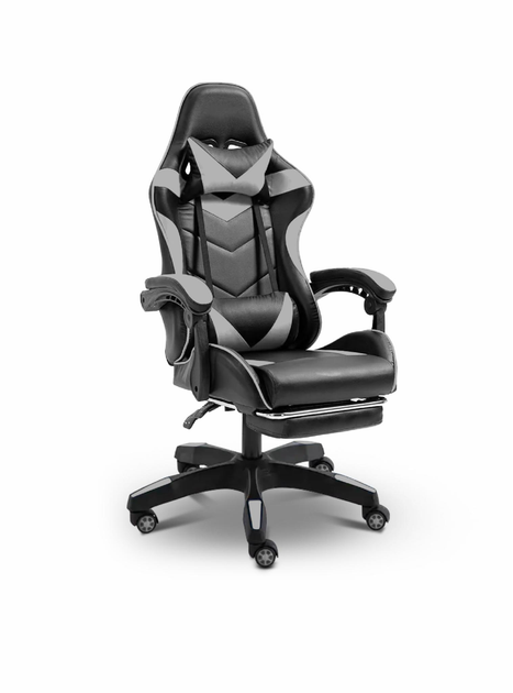 Крісло ігрове GAMING CHAIR G-001 з підставкою для ніг, колір чорний/сірий
