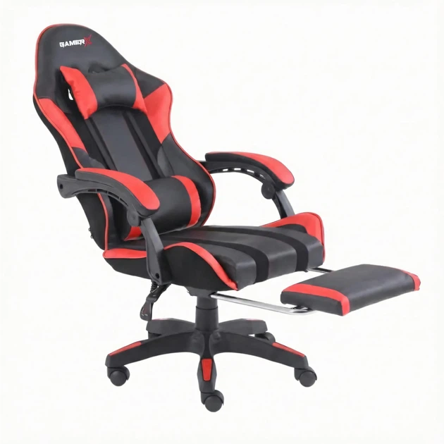 Крісло геймерське професійне GAMER X комп'ютерне з підставкою для ніг, до 120кг + Подушки