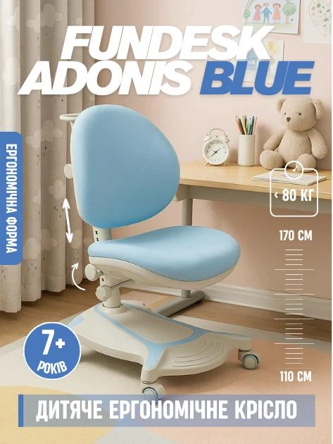 Дитяче комп'ютерне крісло на колесах з підлокітниками та підніжкою для дівчинки та хлопчика синє (M 6151-4)