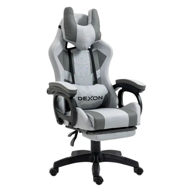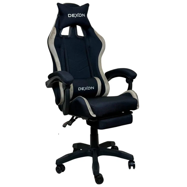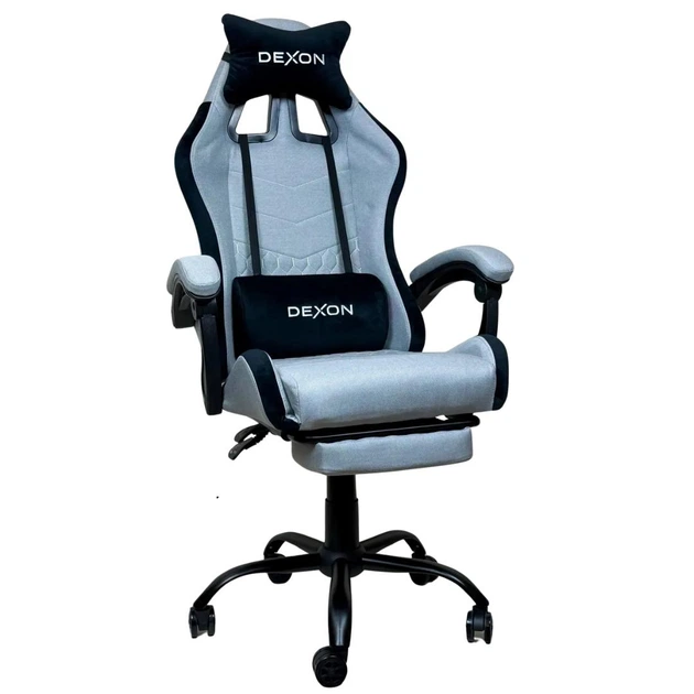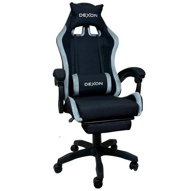 Геймерське крісло DEXON ORION X G-063 з підставкою для ніг, з тканини+подушки велюр, металева хрестовина, Сірий