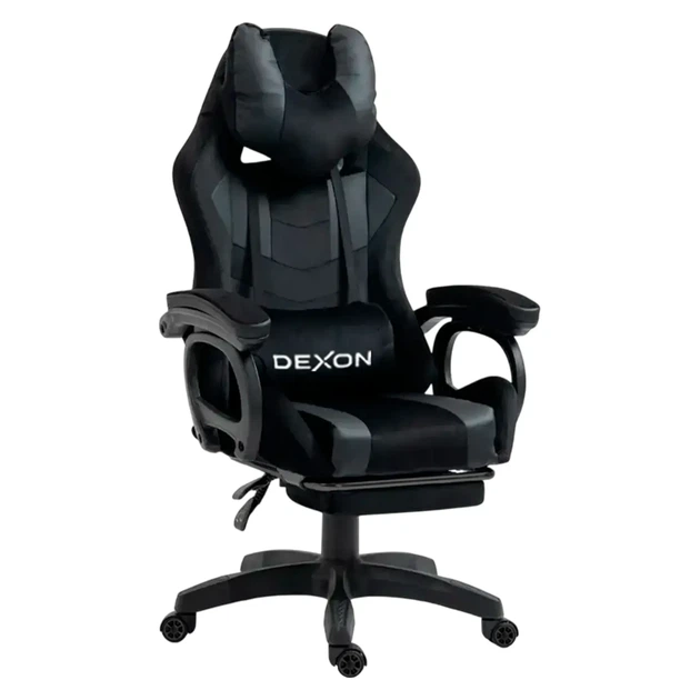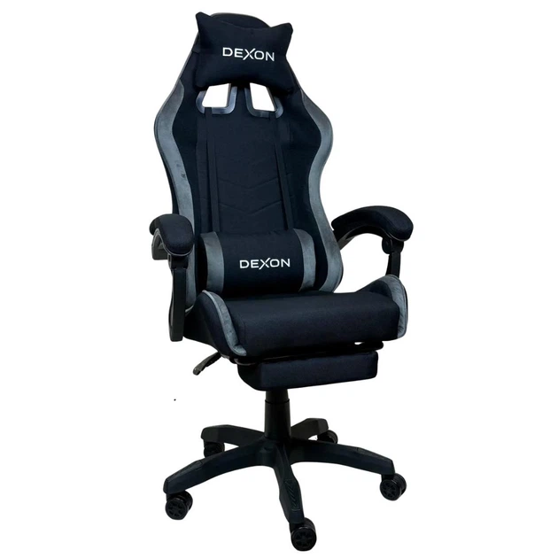 Геймерське крісло DEXON TITAN G-061 з підставкою для ніг, з тканини, Чорний-Темно-сірий