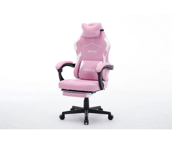 Ігрове комп'ютерне крісло Deus ED09 Розово-білий текстиль із підставкою для ног