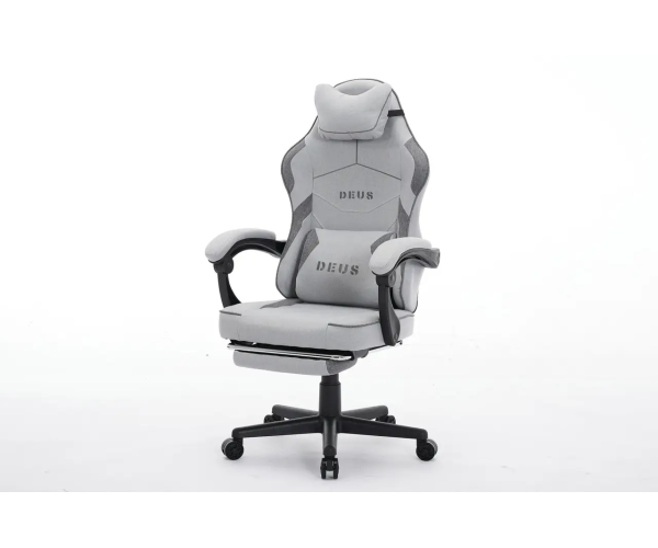 Ігрове комп'ютерне крісло Deus ED09 Сірий текстиль із підставкою для ног