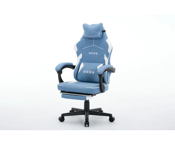 Ігрове комп'ютерне крісло Deus ED09 Синій текстиль з підставкою для ног