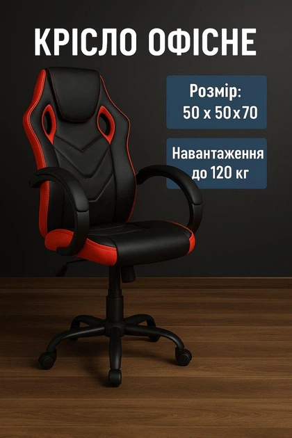 Офісне комп’ютерне крісло 7F RACER EVO (UT-C5914), ергономічне, екошкіра, Чорне з червоним