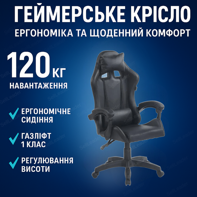 Геймерське крісло 180 нахил з подушкою для геймінгу кіберспорту ігрове сидіння штучна шкіра120 кг