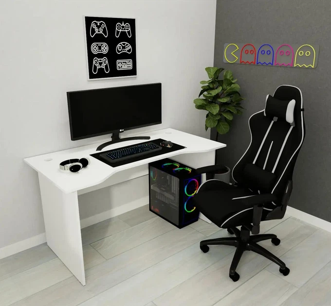 Геймерський комп'ютерний стіл, ігровий стіл з вирізом КИБ-1, стіл для ПК Крафт Білий