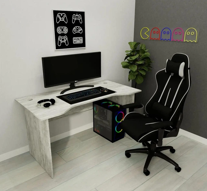 Геймерський комп'ютерний стіл, ігровий стіл з вирізом КИБ-1, стіл для ПК Бетон