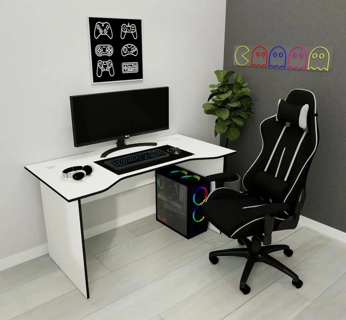 Геймерський комп'ютерний стіл, ігровий стіл з вирізом КИБ-1, стіл для ПК Білий