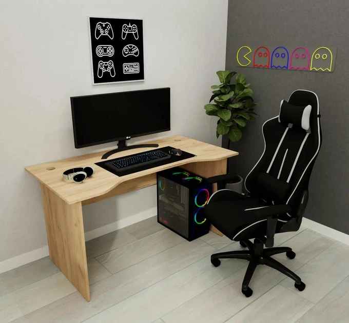 Геймерський комп'ютерний стіл, ігровий стіл КИБ-2, стіл для ПК Дуб Сонома