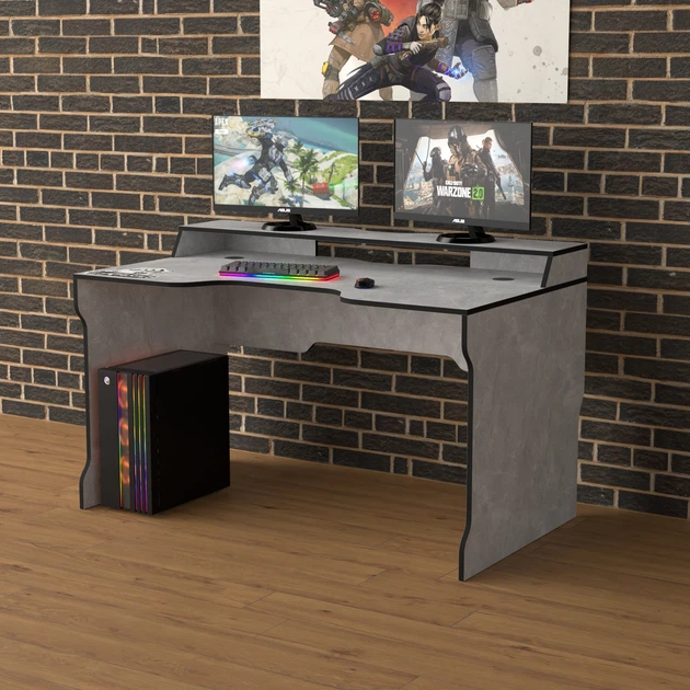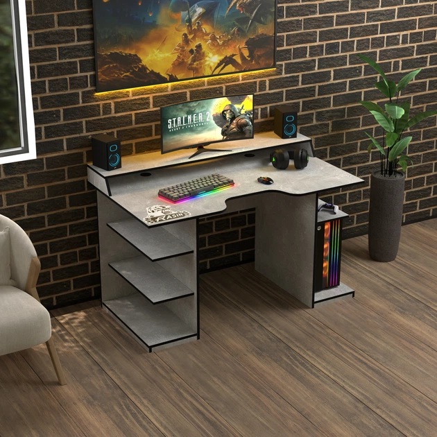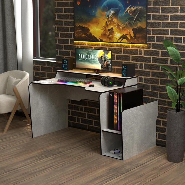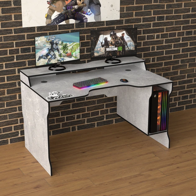 Ігровий стіл з надбудовою геймерський ергономічний Rasin RS-27 Zeus Індустріал-чорний (ламінована ДСП) (RS-27)