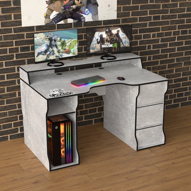 Ігровий стіл з надбудовою геймерський ергономічний Rasin RS-30 Zeus Індустріал-чорний (ламінована ДСП) (RS-30)