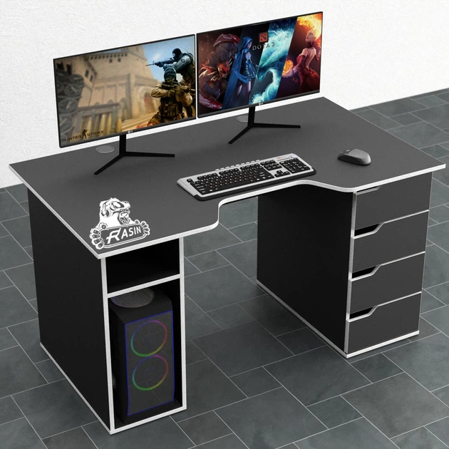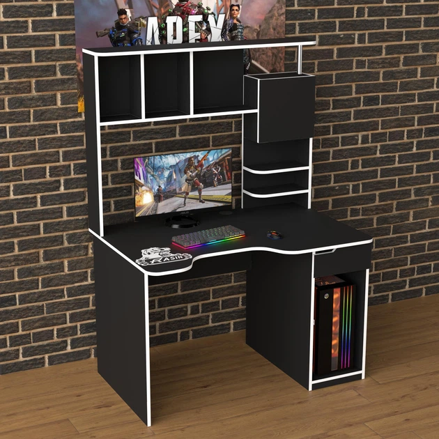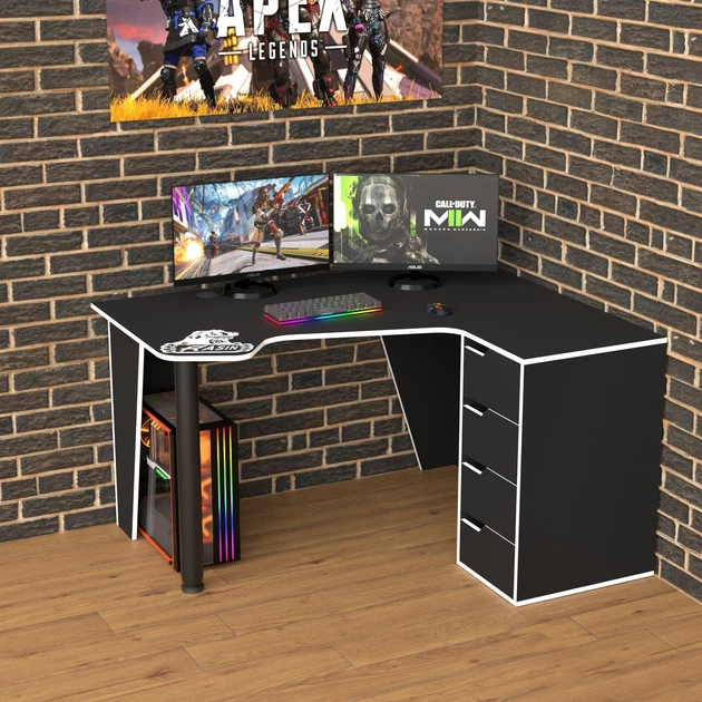 Геймерський стіл Rasin RS-11 Чорний+Білий 120х140 Тіса меблі
