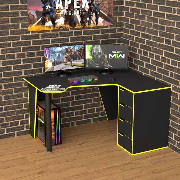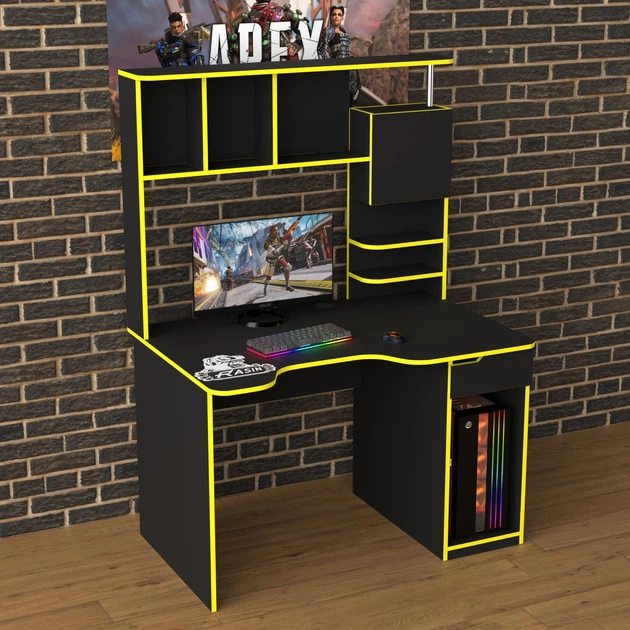 Геймерський стіл Rasin RS-11 Чорний+Жовтий 120х140 Тіса меблі
