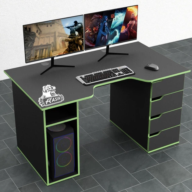 Геймерський стіл Rasin RS-1 чорний/зелений