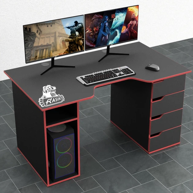 Геймерський стіл Rasin RS-1 чорний/червоний