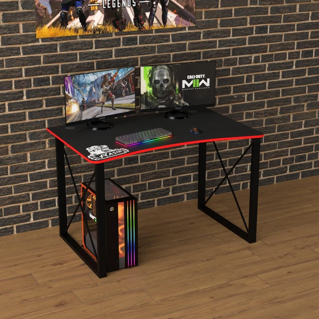 Геймерський стіл Rasin LOFT-14 Чорний+Червоний 120х80 Тіса меблі